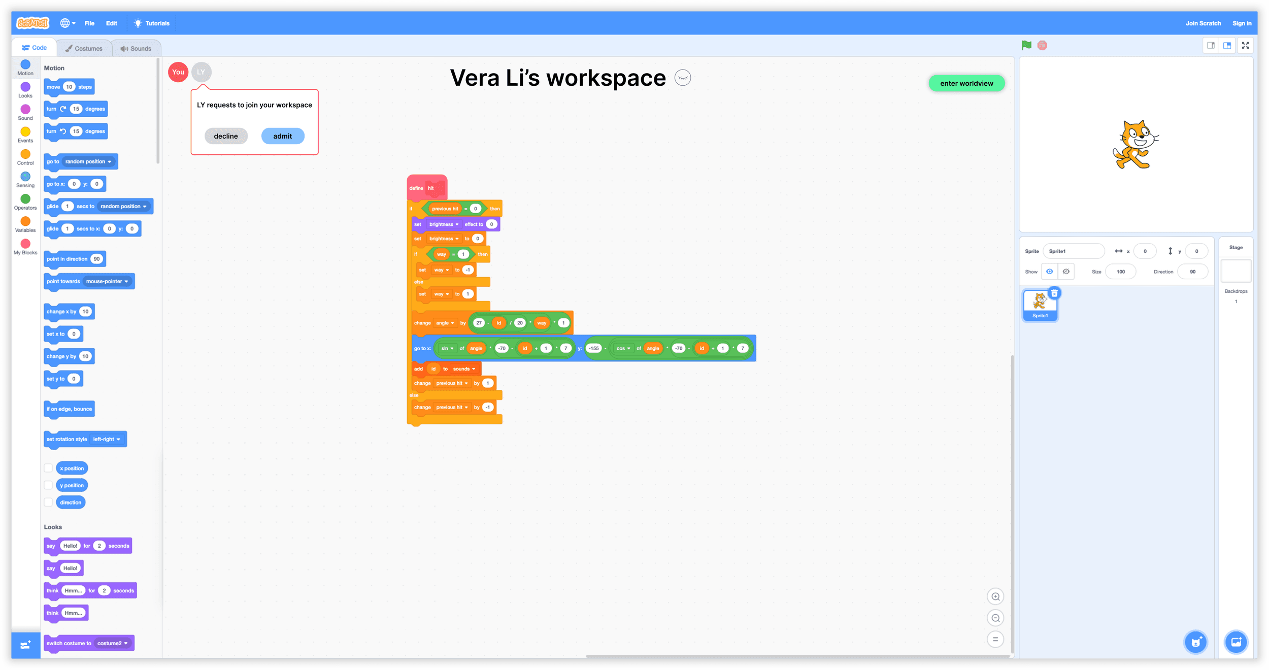 In the initial version, students could click on other people's workspaces to enter and collaborate. The other student would then have the option to admit or deny the request. However, our usability testing revealed that this approach, while giving students the freedom to deny collaboration, proved to be disruptive for them. They had to interrupt their coding logic and consider whether or not to admit other collaborators. This disruption often discouraged collaboration as a result.