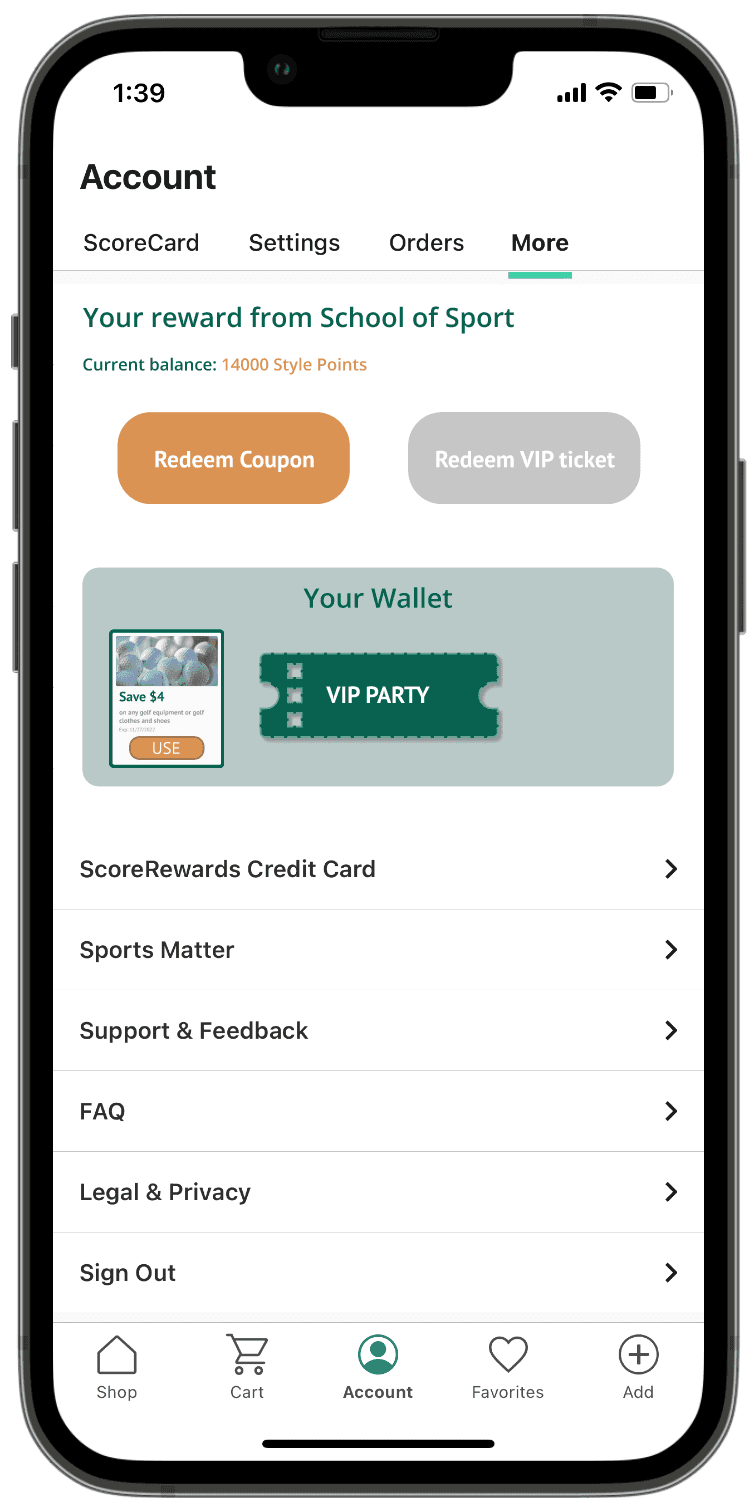 Jr. athletes can check their rewards in their virtual wallet on School of Sport and send the invitation to their parents’ email to redeem coupon codes/VIP party tickets.