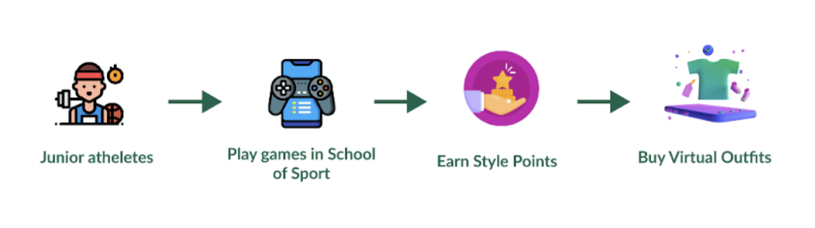 At present, the Jr. athletes get to play games in School of Sport and earn style points to buy virtual outfits only.