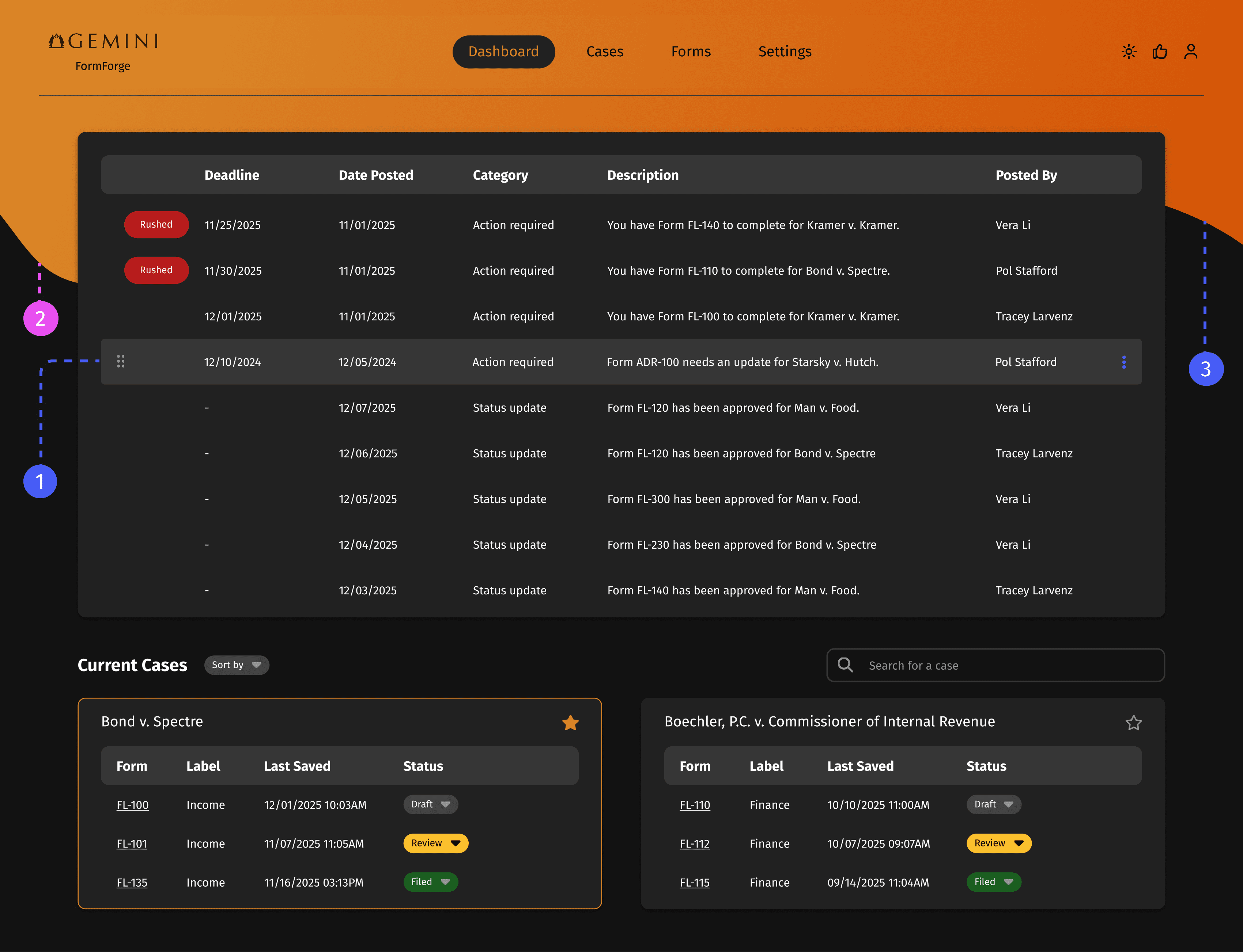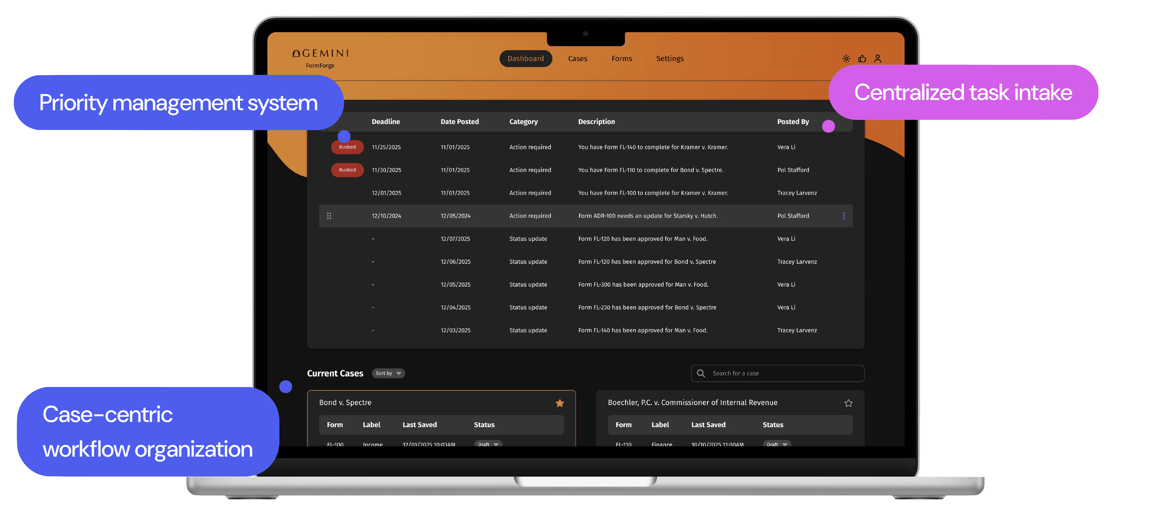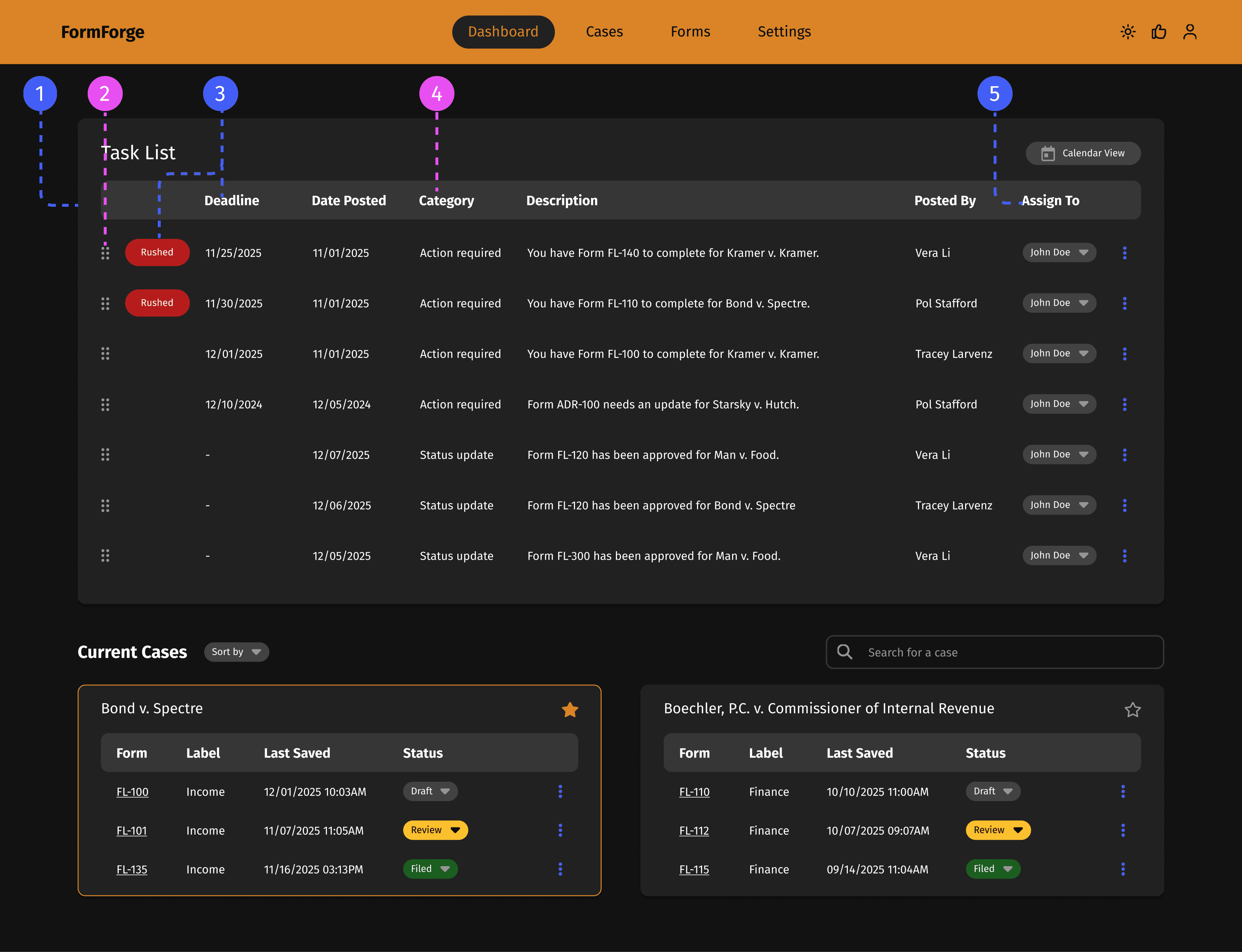 FormForge centralizes form preparation, filing, and case management. With platform integrations, proactive alerts, and customized dashboards, it streamlines tasks and reduces friction.