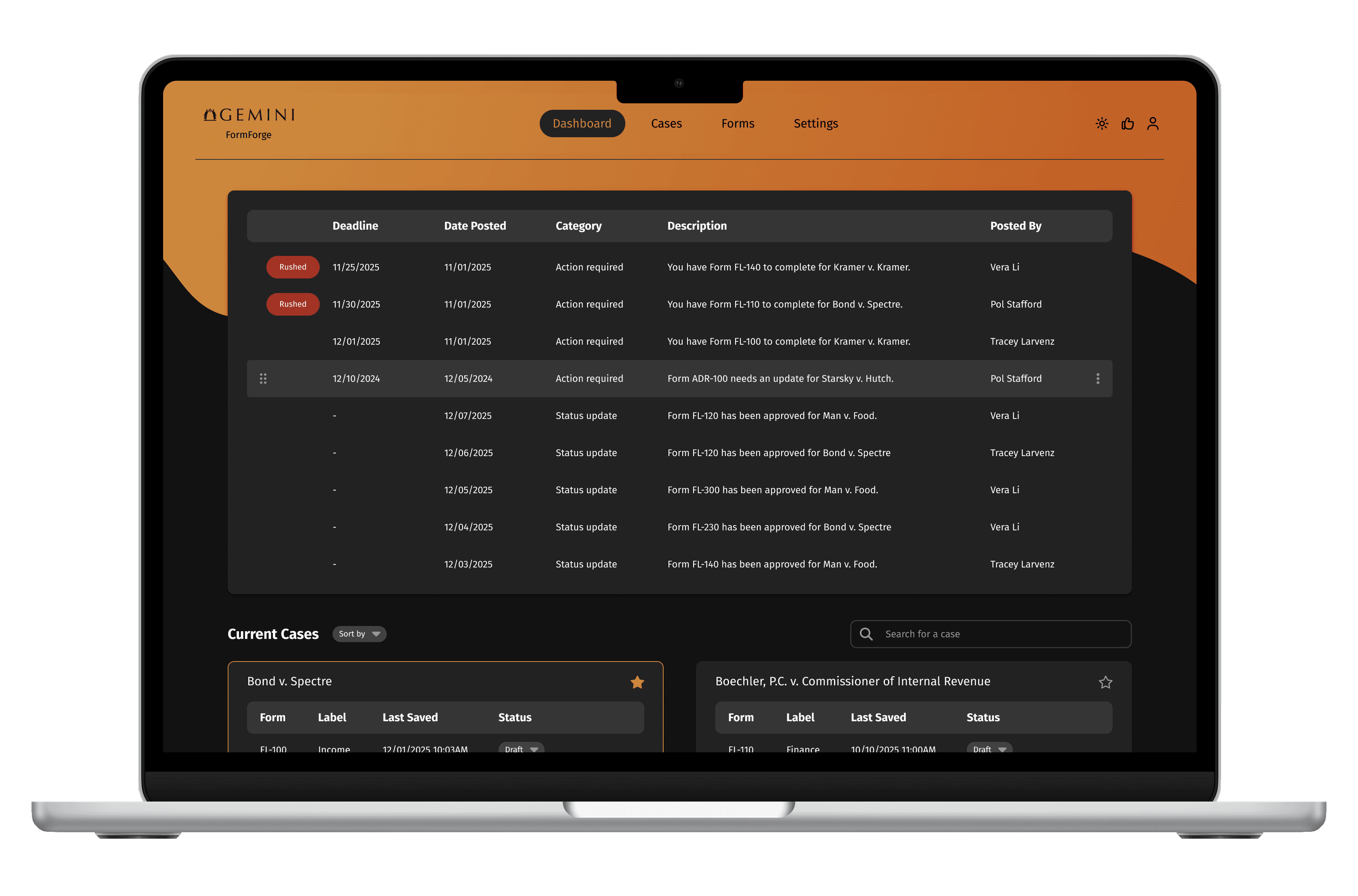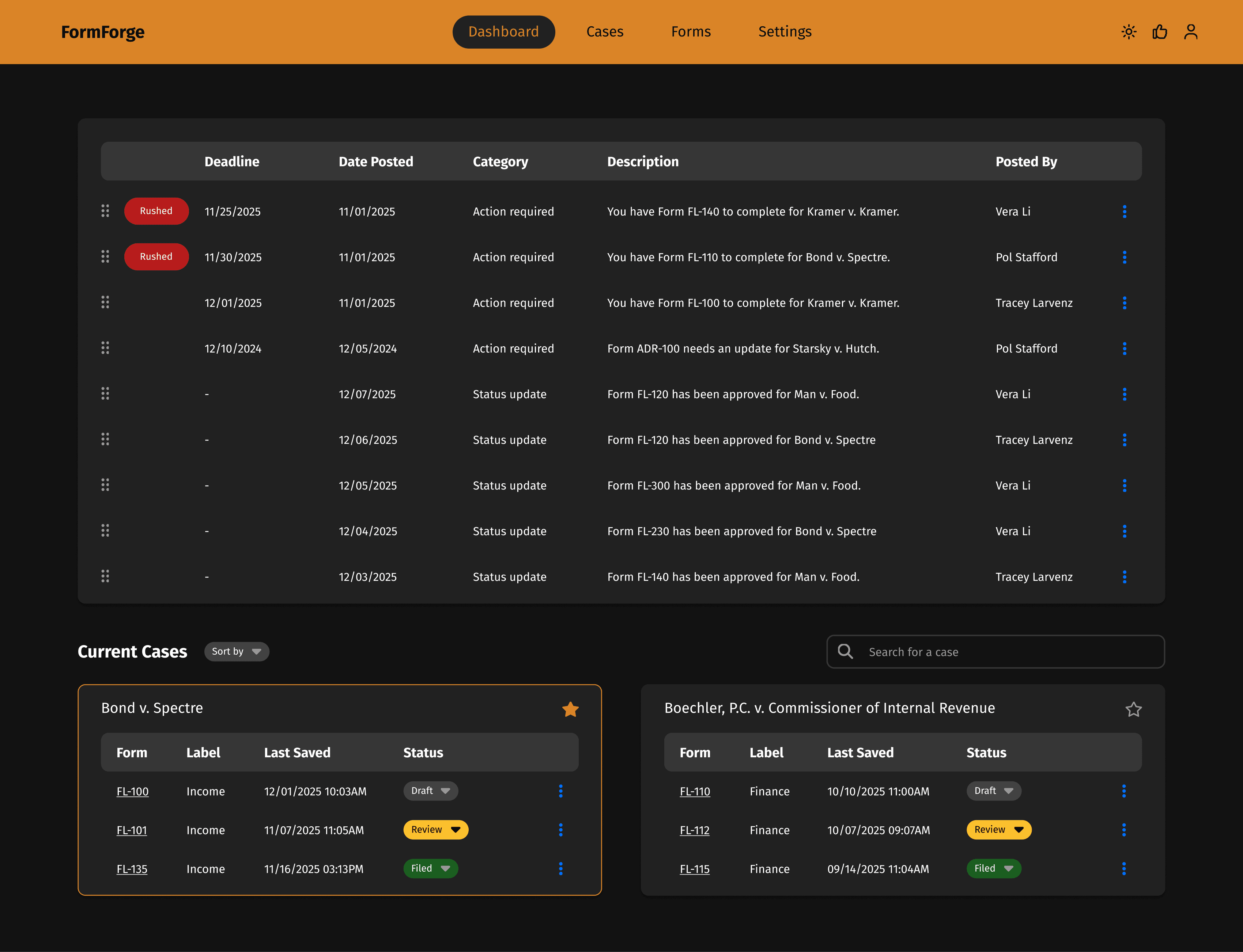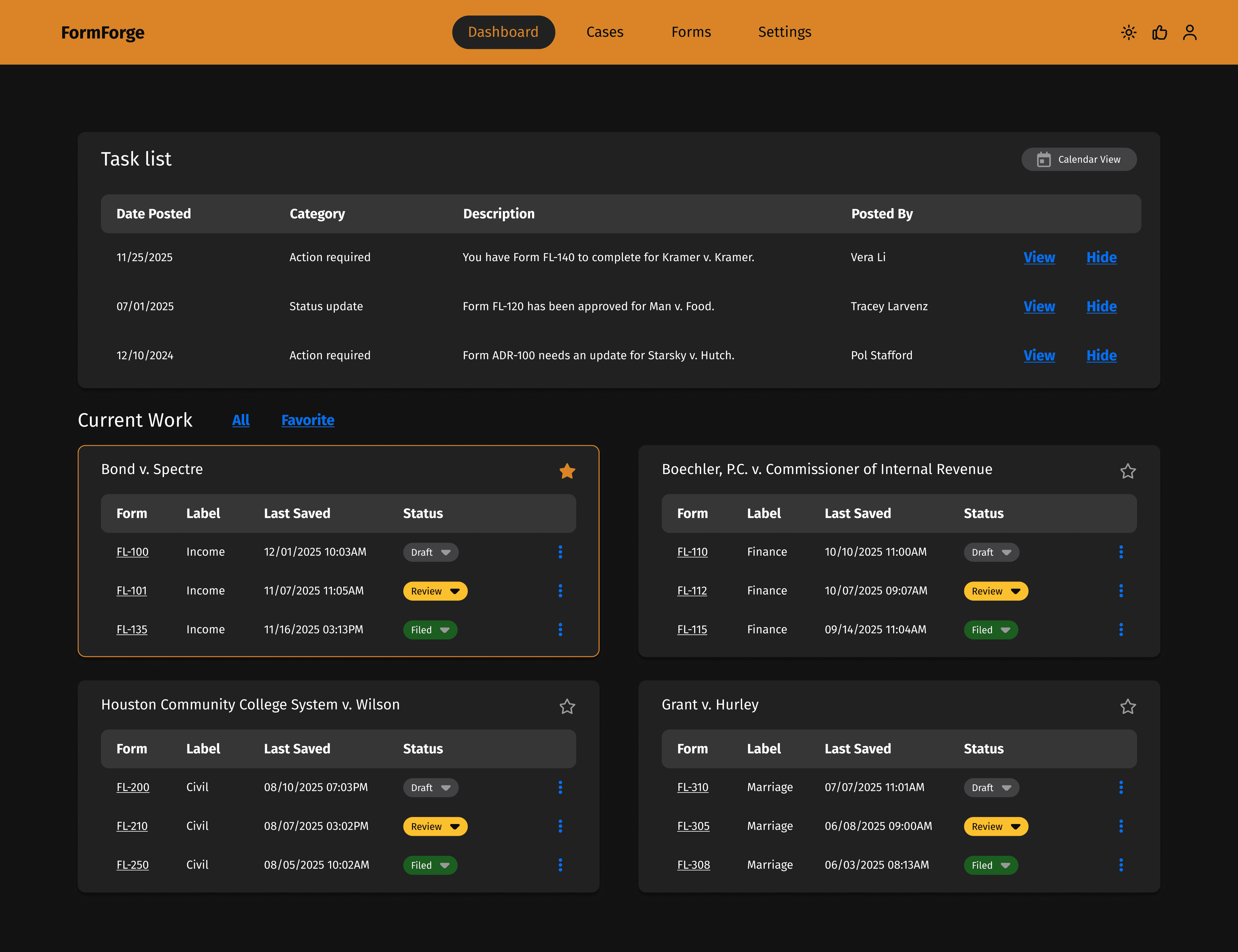 FormForge centralizes form preparation, filing, and case management. With platform integrations, proactive alerts, and customized dashboards, it streamlines tasks and reduces friction.