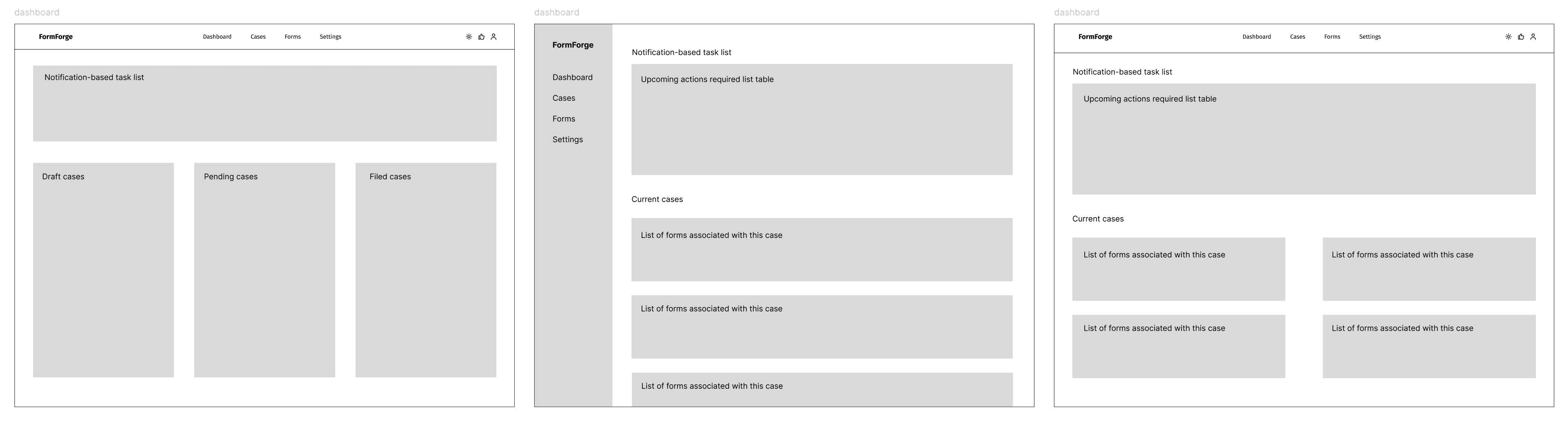 To illustrate the design thinking behind my iteration decisions, I’ll dive deeper into how I iterated on the dashboard—the core of the platform and its workflow. I’ll focus specifically on how the three key MVP features on this page evolved: the priority management system, centralized task intake, and case-centric workflow organization.