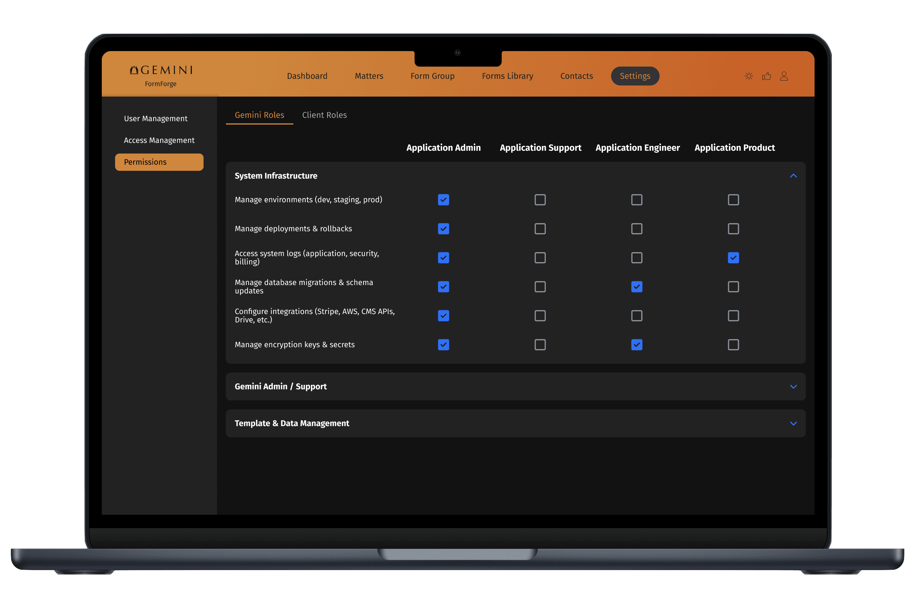 Implemented flexible permission settings tailored for firms of different sizes, ensuring secure access while supporting organizational complexity.
