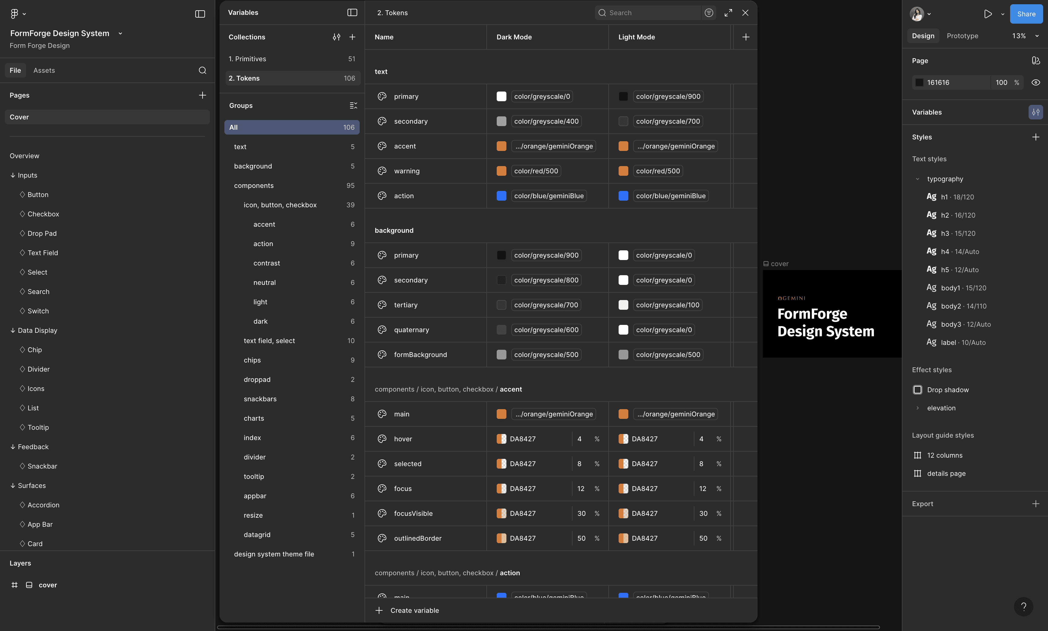 used Figma's variable modes to create themes systematically