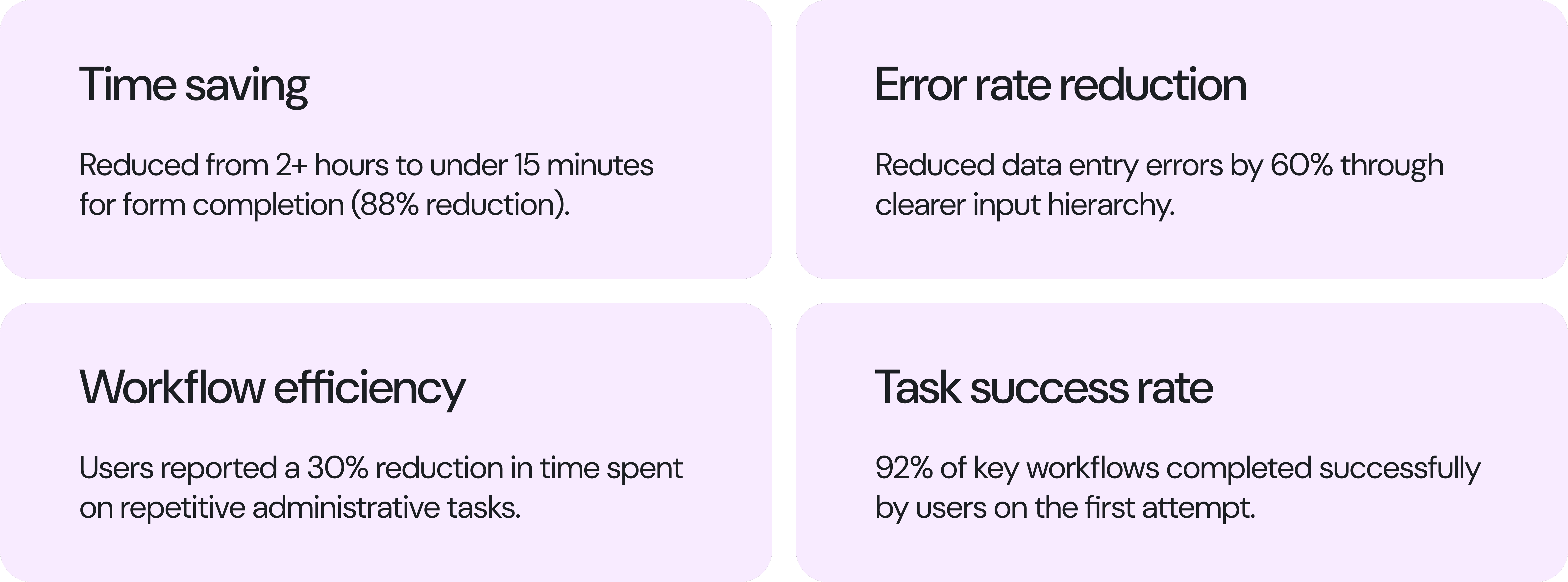 Task Success Rate: 92% of key workflows completed successfully by users on the first attempt.