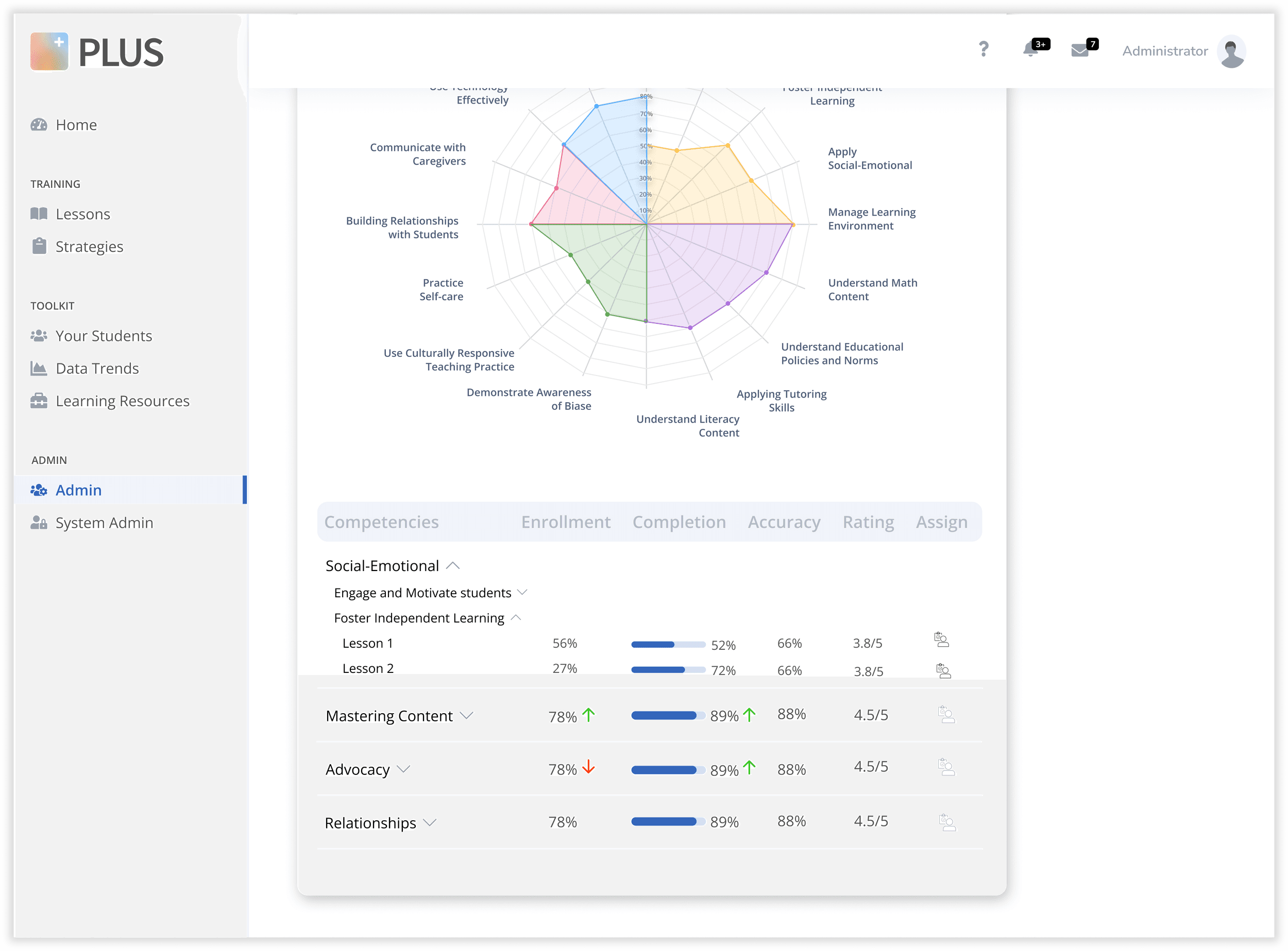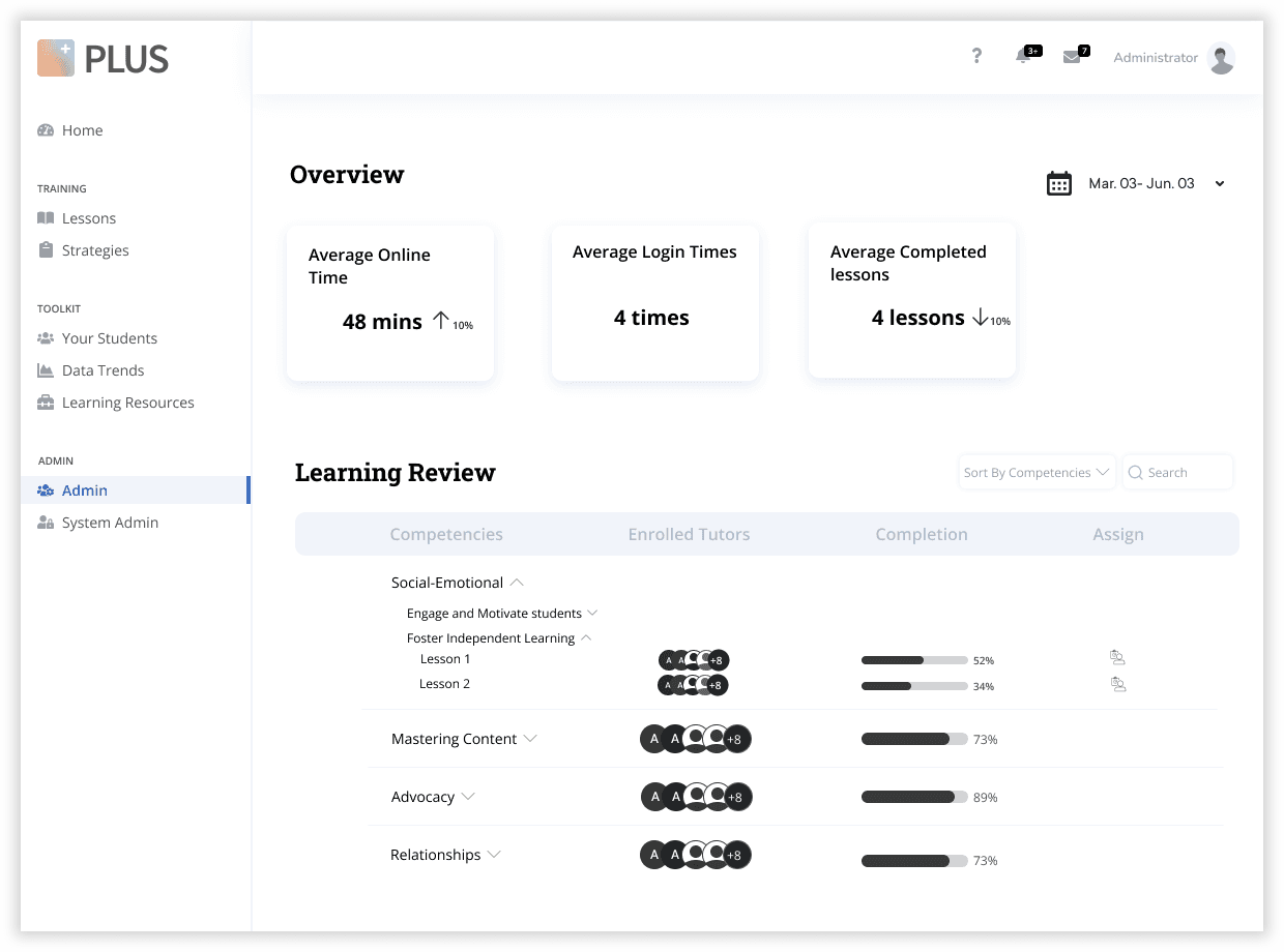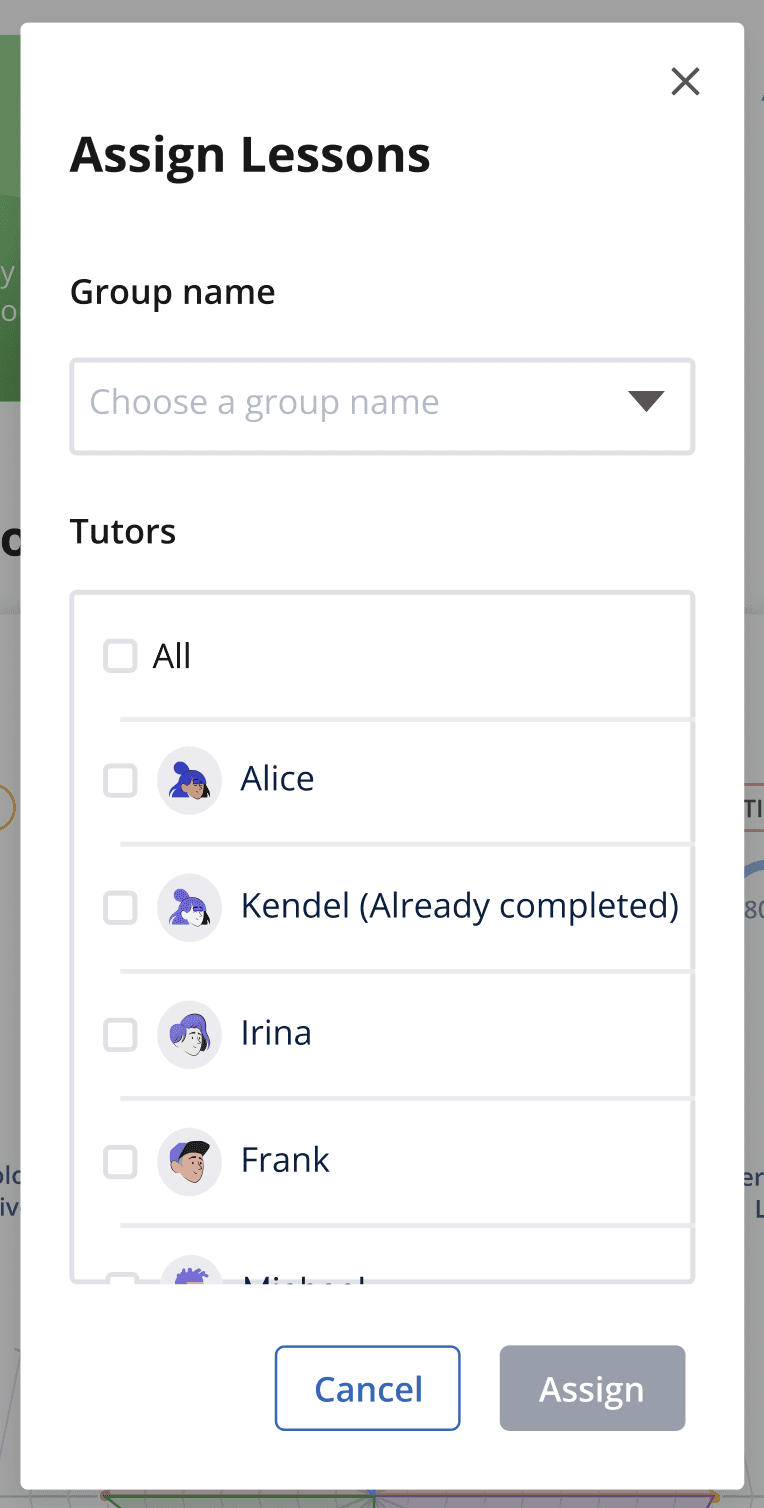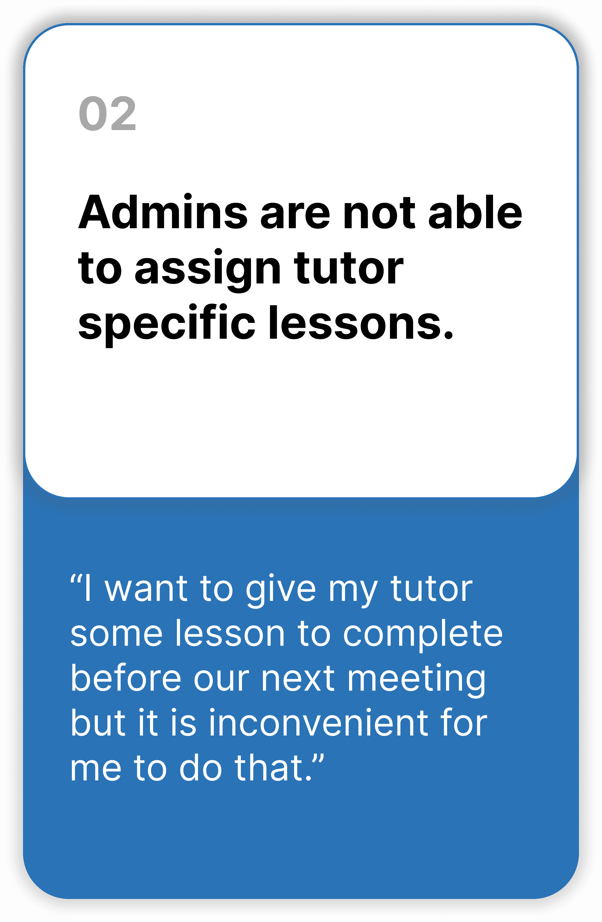 Admins can assign specific tutor certain lessons to help them with that competency area.